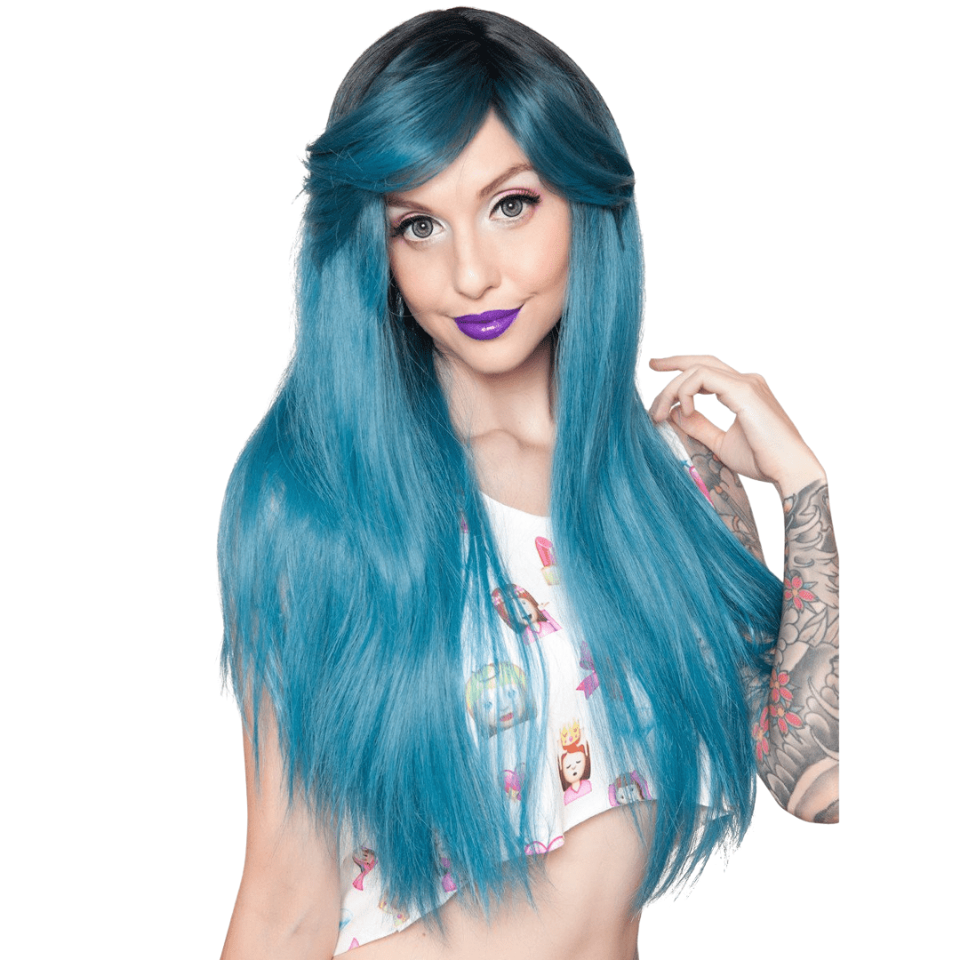 Rockstar Wigs Gothic Lolita Turquoise Bella Dark Root Long Wig Heat Stylable Walmart Com