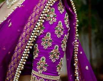 Pure Silk Maggam Blouse With Peal Mirror And Stone Work Etsy